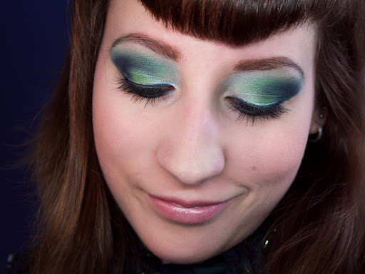 Geschminkt habe ich es mit dem hellen Grün und dem dunklen Blau aus der Bohemian Palette von Sleek, andere Lidschatten waren natürlich auch involviert, aber die zähle ich nur auf Nachfrage auf 😀